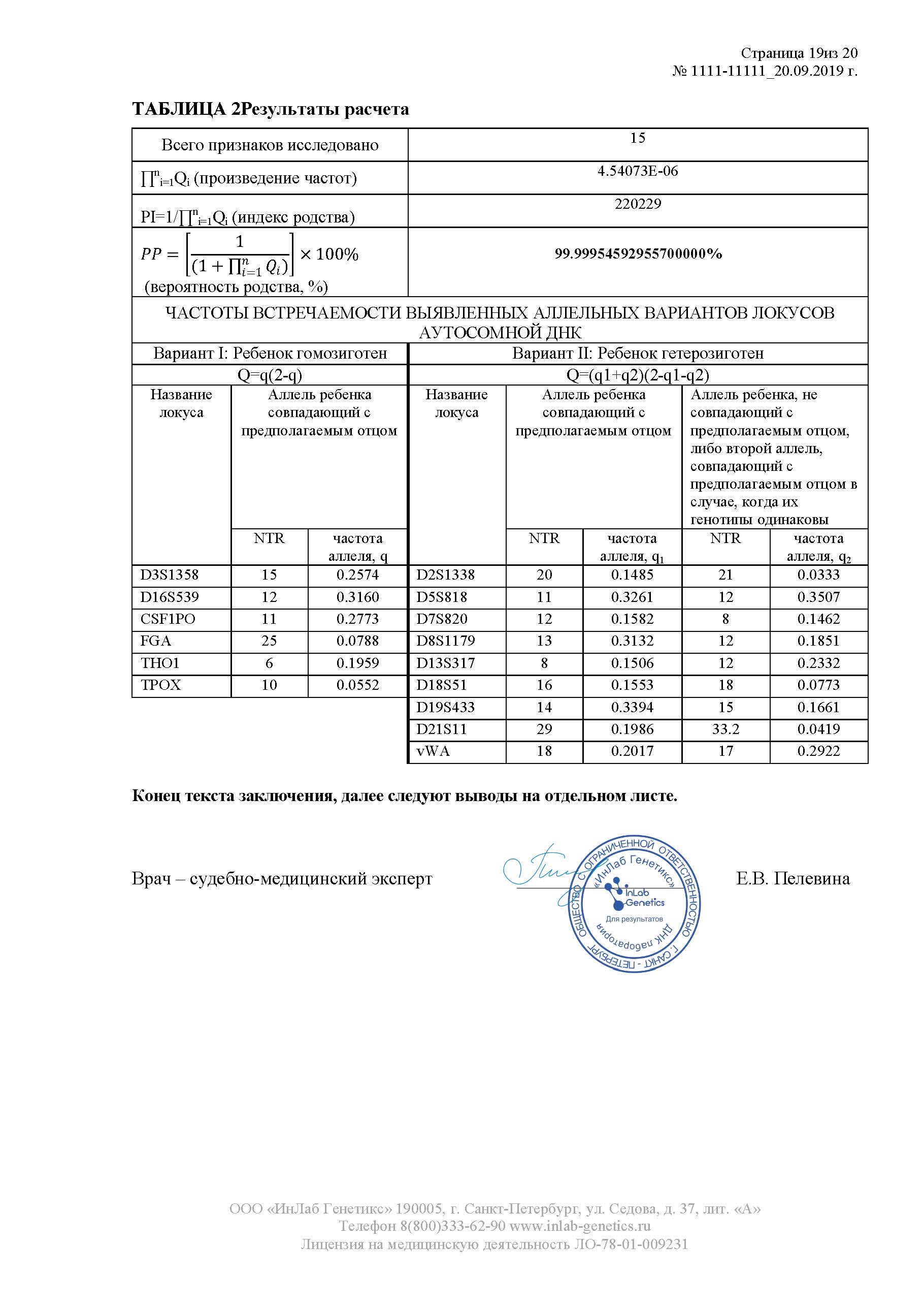 Лаборатория имеет полную аккредитацию и сертификацию. Наши заключения являются полными и развернутыми. Генетическая экспертиза ДНК становится основным доказательством в судебных спорах и принимаются всеми судами и государственными учреждениями Российской Федерации.